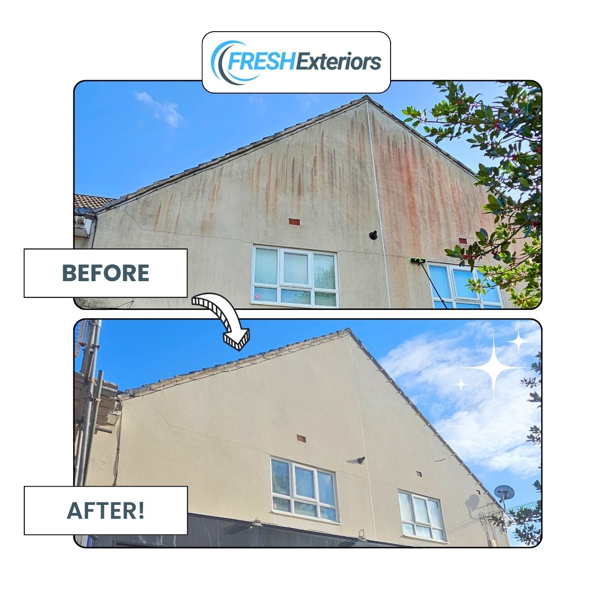 At Fresh Exteriors, we specialise in professional render cleaning that restores your property’s appearance without damaging the surface.